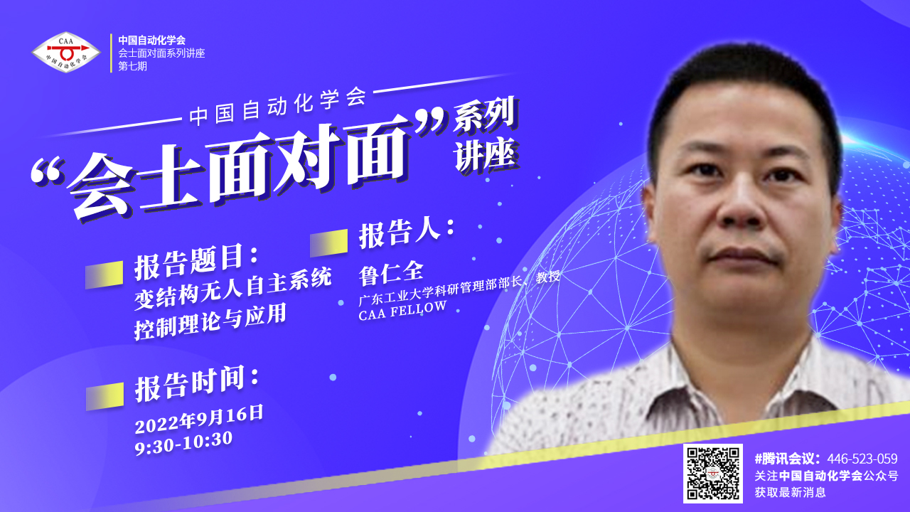 第七期會士面對面講座于2022年9月16日上午成功召開,中國自動化學(xué)會會士、監(jiān)事,廣東工業(yè)大學(xué)科研管理部部長魯仁全教授作題為“變結(jié)構(gòu)無人自主系統(tǒng)控制理論與應(yīng)用”的報告。