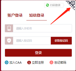 登陸賬號:使用注冊時的賬號密碼,或使用手機號接收驗證碼登陸系統(tǒng),或點擊右上角二維碼使用與注冊手機號綁定的微信掃碼即可登陸系統(tǒng)