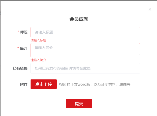 通過“會員成就”欄目上傳學(xué)術(shù)成果、所獲獎勵等相關(guān)信息,填寫成就標(biāo)題、簡介,上傳附件材料,如有公開鏈接可一并上傳。審核通過后將通過學(xué)會官方網(wǎng)站、微信公眾號等進行宣傳,您也將獲得對應(yīng)積分。