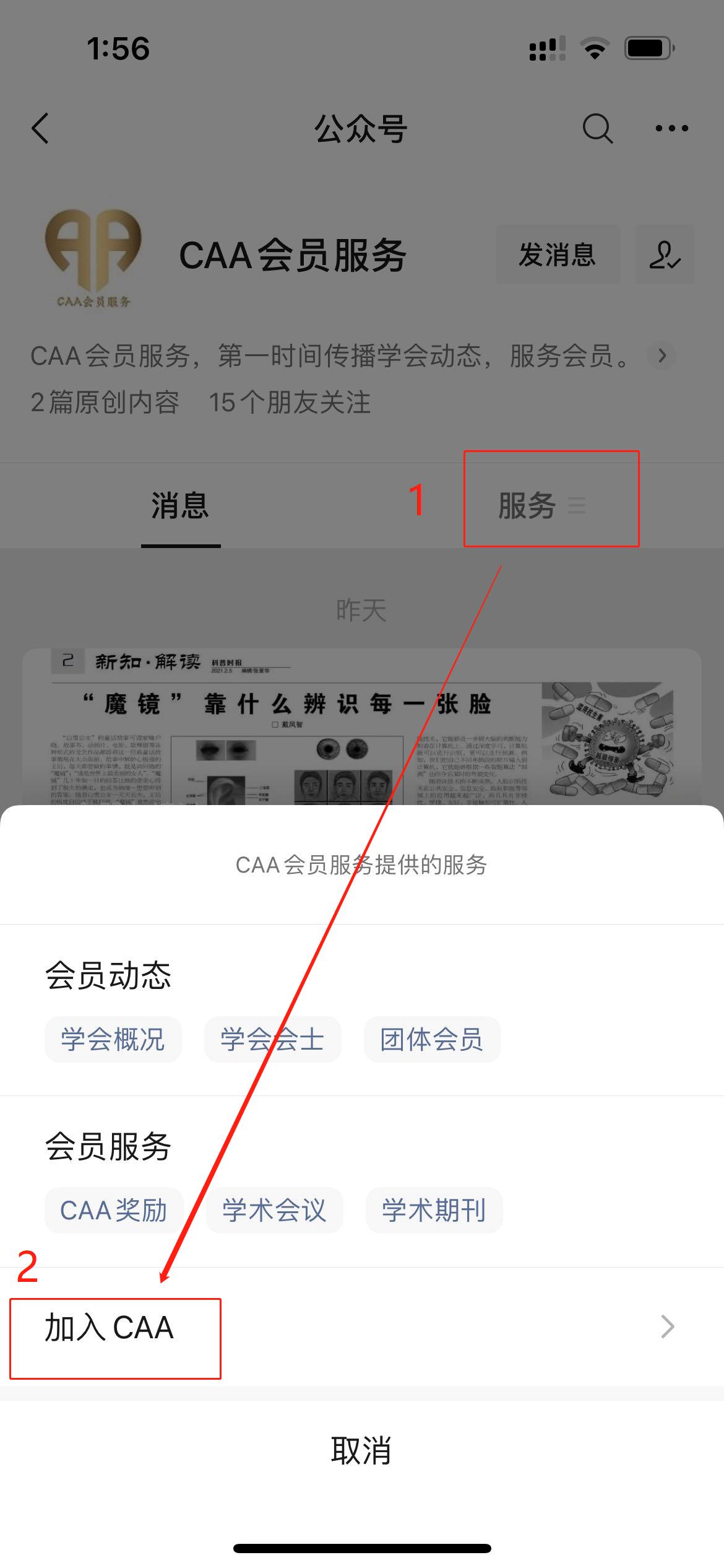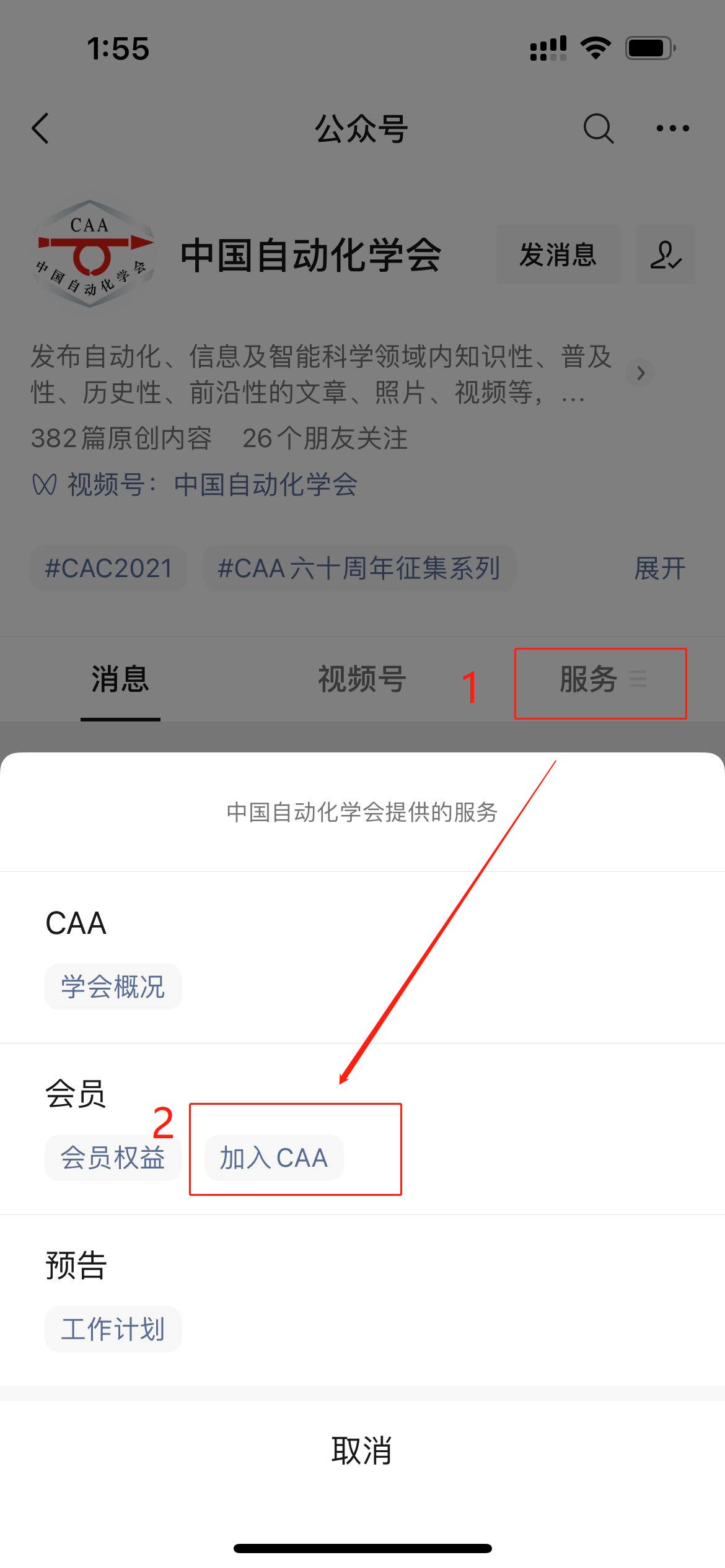 簡單快捷型:直接在“CAA會員服務(wù)”選擇“加入CAA”菜單選項,和“中國自動化學(xué)會”微信公眾號菜單欄選擇“會員”,后點擊“加入CAA”跳轉(zhuǎn)到會員系統(tǒng)。