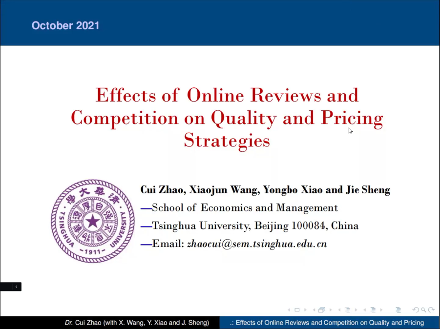 清華大學(xué)博士后趙翠針對由兩個(gè)相互競爭的企業(yè)所構(gòu)成的在線零售市場,探討了兩個(gè)企業(yè)如何依據(jù)在線評論制定初始質(zhì)量(和/或價(jià)格)決策以及產(chǎn)品質(zhì)量(和/或價(jià)格)調(diào)整策略問題。研究發(fā)現(xiàn)不同于壟斷市場,在競爭市場中動態(tài)調(diào)整產(chǎn)品質(zhì)量和/或產(chǎn)品價(jià)格不一定能夠幫助企業(yè)獲得更多的利潤。
