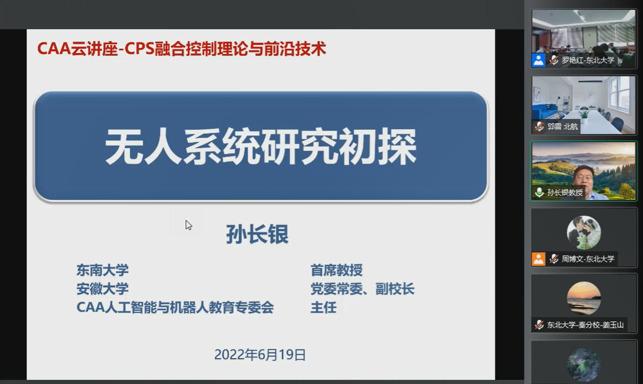 為更好地探討國際學(xué)術(shù)前沿研究、把握新一輪技術(shù)和產(chǎn)業(yè)變革先機(jī),提升我國科技創(chuàng)新水平,由中國自動化學(xué)會主辦,中國自動化學(xué)會信息物理系統(tǒng)控制與決策專業(yè)委員會和中國自動化學(xué)會能源互聯(lián)網(wǎng)專業(yè)委員會共同承辦的CAA云講座“信息物理融合的控制理論與前沿技術(shù)論壇”于2022年6月19日以線上線下混合會議的形式在東北大學(xué)開展并取得圓滿成功,論壇特邀了北京航空航天大學(xué)郭雷教授、北京理工大學(xué)夏元清教授、華中科技大學(xué)曾志剛教授、安徽大學(xué)孫長銀教授和東南大學(xué)虞文武教授作專題報(bào)告,線上線下同步觀看近八萬人次。中國自動化學(xué)會信息物理系統(tǒng)控制與決策專業(yè)委員會主任楊光紅教授和中國自動化學(xué)會能源互聯(lián)網(wǎng)專業(yè)委員會主任張化光教授共同擔(dān)任本次論壇主席,東北大學(xué)智能科學(xué)與技術(shù)研究院副院長楊東升教授擔(dān)任論壇組織主席,報(bào)告主持人分別由東北大學(xué)楊東升教授、羅艷紅研究員、王占山教授、葉丹教授和周博文副教授擔(dān)任。