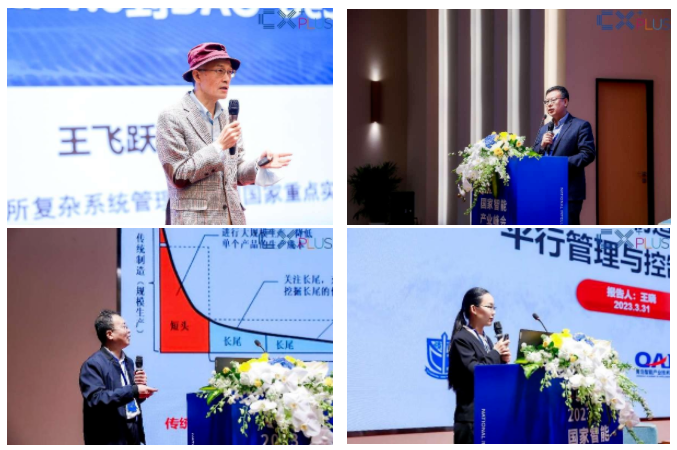 復雜系統管理與控制國家重點實驗室主任、中國自動化學會監(jiān)事長王飛躍教授作了題為《問答ChatGPT之后的智能產業(yè):從CMO-SciTS的QAII 1.0到DAO-DeSci的QAII 2.0》的主旨報告,青島萬龍高新科技集團有限公司董事長、青島智能產業(yè)技術研究院副院長高彥臣作了題為《“機器代人”產業(yè)發(fā)展新的里程碑》的主旨報告,熊剛作了題為《面向服裝鞋業(yè)的3D智能化系統及社會制造云平臺》的報告,王曉作了題為《面向CPSS制造系統的平行管理與控制研究》的報告。