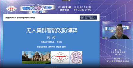 2023年第二期(總第七期)“我和優(yōu)博有個約會”講座于2023年5月12日下午成功召開,牛津大學計算機系博士后閆芮博士作題為“無人集群智能攻防博弈”的報告。