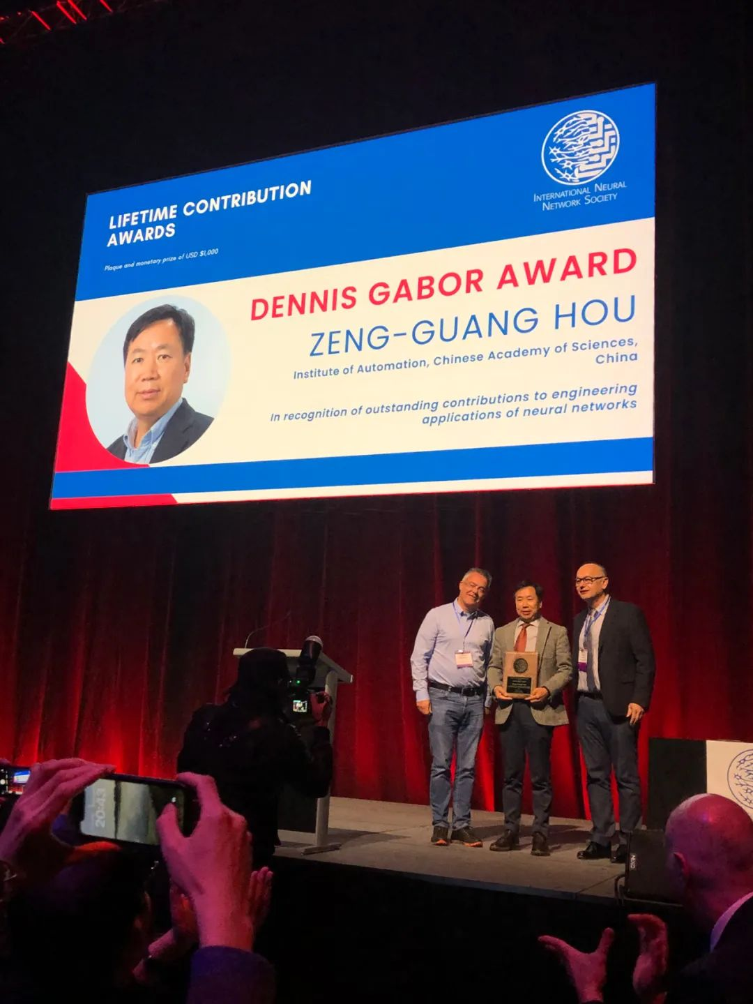 2023年6月18至23日,國(guó)際神經(jīng)網(wǎng)絡(luò)大會(huì)(IJCNN 2023)在澳大利亞召開。會(huì)上,中國(guó)自動(dòng)化學(xué)會(huì)會(huì)士、副理事長(zhǎng),中國(guó)科學(xué)院自動(dòng)化研究所侯增廣研究員因其在人工智能神經(jīng)網(wǎng)絡(luò)及在康復(fù)工程應(yīng)用領(lǐng)域的杰出貢獻(xiàn)被授予國(guó)際神經(jīng)網(wǎng)絡(luò)學(xué)會(huì)的杰出貢獻(xiàn)獎(jiǎng)(Lifetime Contribution Award)——丹尼斯·甘伯獎(jiǎng)(Dennis Gabor Award)。