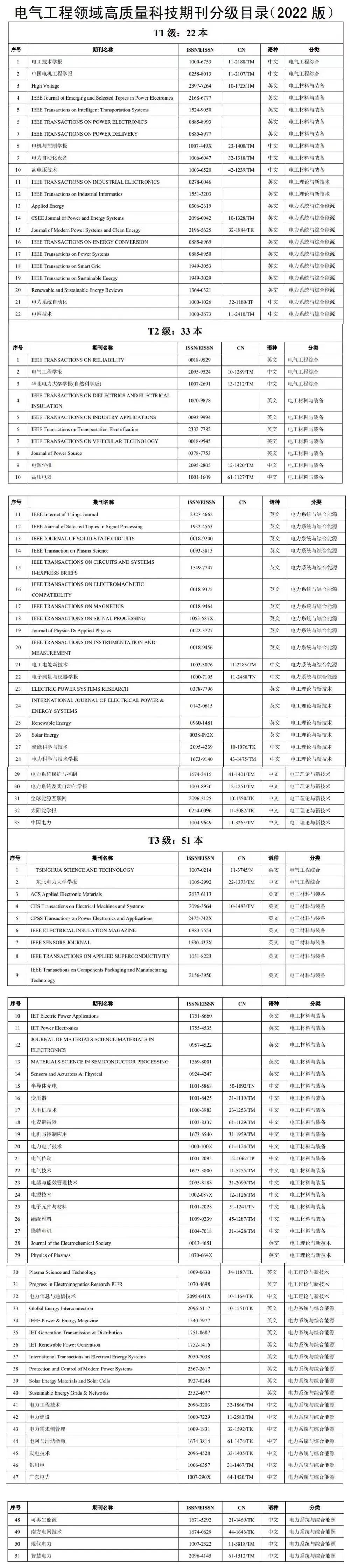 近日,電氣工程領(lǐng)域高質(zhì)量科技期刊分級目錄(2022版)已正式發(fā)布,《電氣傳動》成功入選。