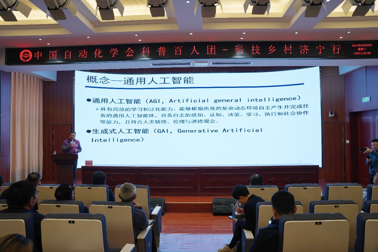 為落實《關于新時代進一步加強科學技術普及工作的意見》和國家鄉(xiāng)村振興戰(zhàn)略,開展科技助力鄉(xiāng)村振興行動,2024年4月9日,中國自動化學會在濟寧市成功開展了第一期“科普百人團—科技鄉(xiāng)村行”系列活動。本次活動由中國自動化學會主辦,中國自動化學會普及工作委員會、中國自動化學會智慧教育專業(yè)委員會聯(lián)合承辦,中國自動化學會AICE測評工作組協(xié)辦。本次活動走進濟寧市第一中學任城校區(qū)、濟寧市實驗中學、任城區(qū)干部夜校,為鄉(xiāng)村師生講授人工智能通識、前沿與發(fā)展相關課程,激發(fā)青少年對人工智能的學習興趣,提高科技教師對智能時代青少年AI核心素養(yǎng)培育的緊迫感與使命感。
