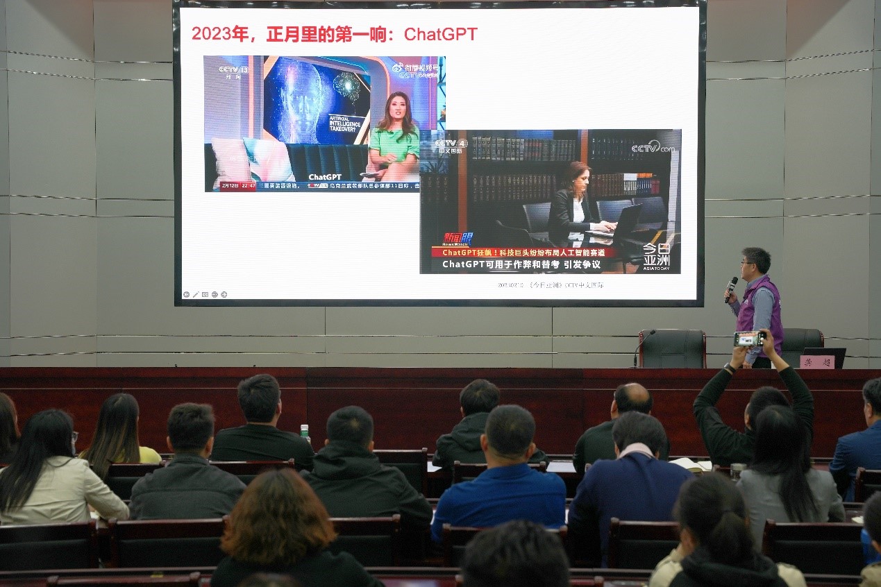 本次活動的最后一站走進濟寧市任城區(qū)干部夜校,由任城區(qū)委副書記周傳林主持,CAA普及工作委員會委員、清華大學日本研究中心主任助理龔超博士作題為“AIGC時代的人工智能未來與發(fā)展”的主題報告。報告通過案例分析,展示了AI如何在我們的工作、生活和學習中發(fā)揮賦能作用。