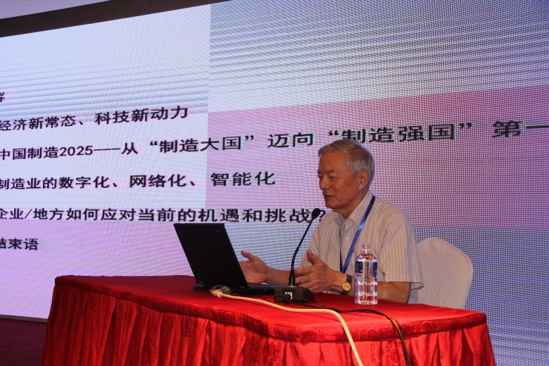 開幕式后舉行了大會特邀報告會,吳澄院士和楊海成教授分別作了題為《中國制造2025—從制造大國邁向制造強國》和《全面認識互聯(lián)網(wǎng)+對工業(yè)創(chuàng)新發(fā)展影響,大力推進智能制造踐行“中國制造2025”》的報告。