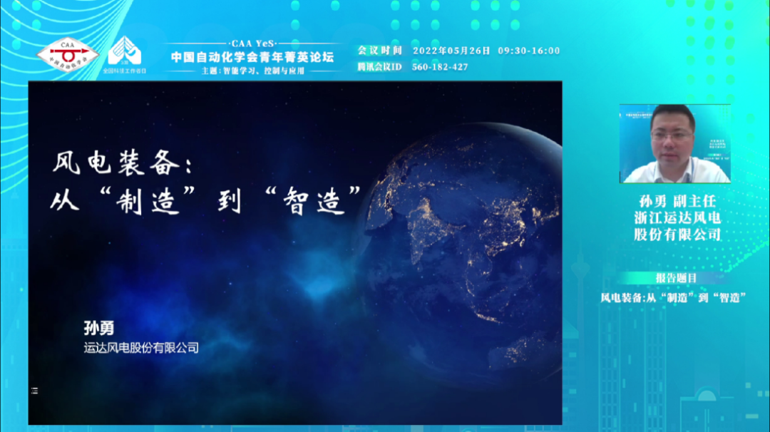 第三位報(bào)告人是來自浙江運(yùn)達(dá)風(fēng)電股份有限公司技術(shù)中心的孫勇副主任,報(bào)告題目為“風(fēng)電裝備:從‘制造’到‘智造’”。孫主任首先簡要回顧了風(fēng)電行業(yè)的發(fā)展歷程及風(fēng)電在電力行業(yè)中的戰(zhàn)略地位,隨后通過多個(gè)場景介紹數(shù)字化、智能化在風(fēng)電行業(yè)全生命周期中的應(yīng)用,結(jié)合風(fēng)電行業(yè)成本控制的現(xiàn)狀,剖析智能生產(chǎn)制造帶來的經(jīng)濟(jì)效益。最后,結(jié)合國家能源戰(zhàn)略和行業(yè)趨勢,提出未來風(fēng)電制造業(yè)智能化的發(fā)展方向。
