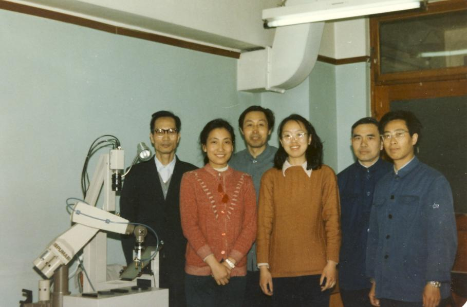 圖3 參與清華大學(xué)智能機(jī)器人實(shí)驗(yàn)室建設(shè)的科研人員合影。左一為張鈸。(1985年)