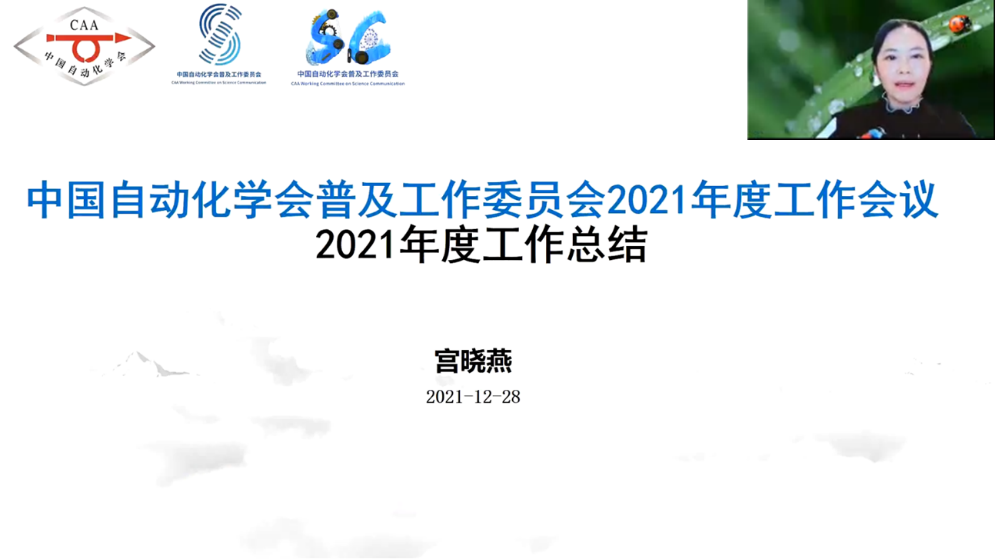 自動化學(xué)會張楠秘書長在致辭發(fā)言中回顧了普及工作委員會、智慧教育專委會2021年的工作成績。她談到,今年恰逢中國共產(chǎn)黨成立100周年,同時也是中國自動化學(xué)會成立60周年,普及工作委員會和智慧教育專委會共同努力,聯(lián)合開展了一系列行之有效的工作,推動了人工智能技術(shù)與教育深度融合,進(jìn)一步推進(jìn)了高水平人工智能師資隊伍建設(shè);推廣普及人工智能教育,助力人工智能時代創(chuàng)新型人才培養(yǎng),提高了中國自動化學(xué)會整體的科學(xué)傳播能力。她對全體委員的出色工作、辛苦付出表示感謝,對科普工作委員會對學(xué)會做出的貢獻(xiàn)表示感謝,今年中國自動化學(xué)會榮獲民政部授予的“全國先進(jìn)社會組織”榮譽稱號,全國兩百余家學(xué)會只有9家獲此殊榮,這里也包含了普及工作委員會的成績,對此表示熱烈的祝賀和感謝。