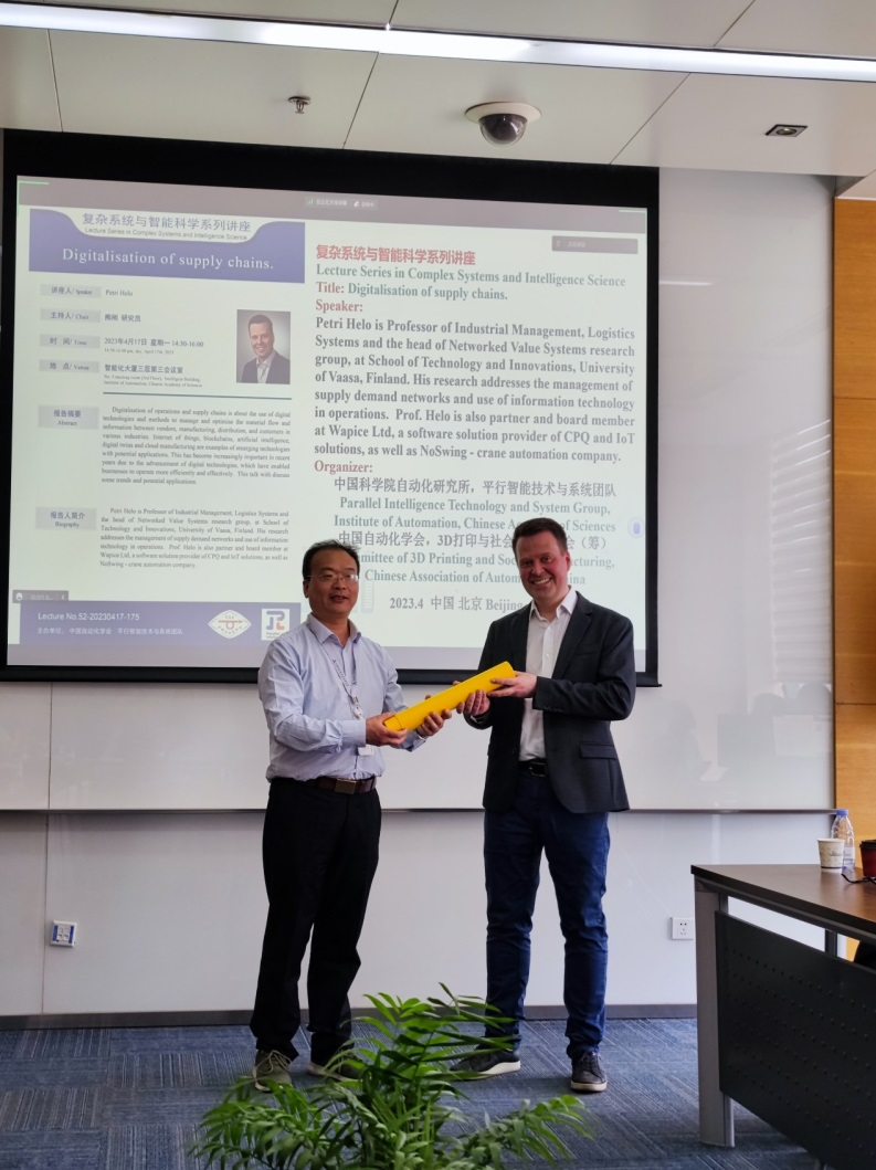 2023年4月17日中國自動化學(xué)會3D打印與社會制造專業(yè)委員會(籌)邀請到芬蘭瓦薩大學(xué)教授Petri Helo做客“CAA復(fù)雜系統(tǒng)與智能科學(xué)系列講座”,并作題為“Digitalisation of Operations and Supply Chains”的報(bào)告。