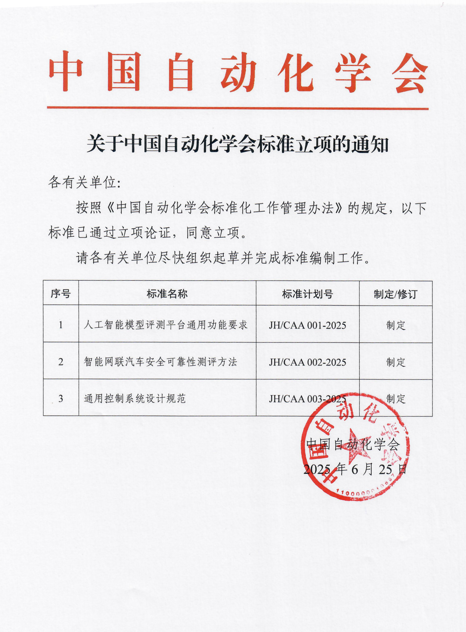 按照《中國(guó)自動(dòng)化學(xué)會(huì)標(biāo)準(zhǔn)化工作管理辦法》的規(guī)定,以下標(biāo)準(zhǔn)已通過(guò)立項(xiàng)論證,同意立項(xiàng)。