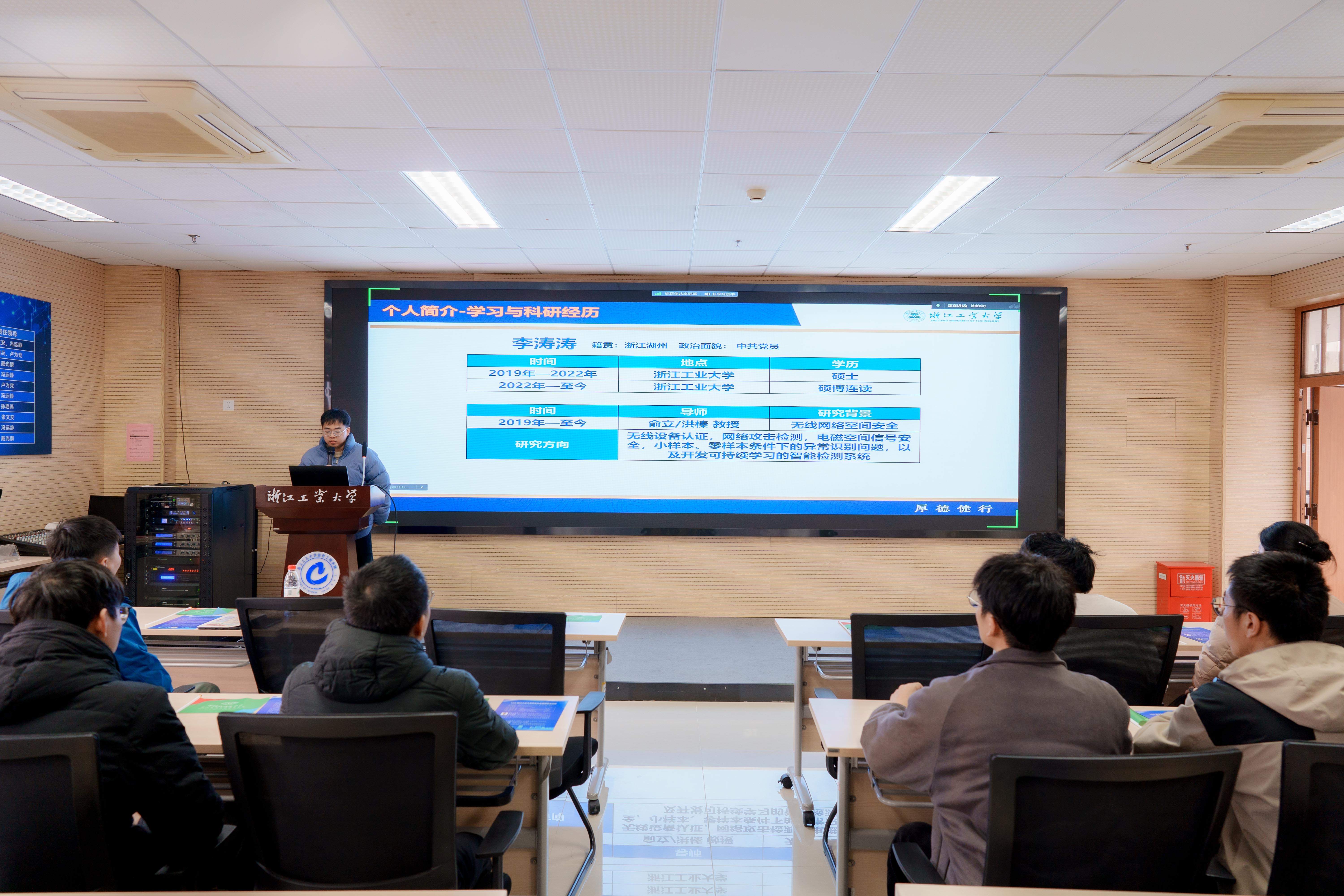 本次碩博學術(shù)論壇邀請的兩位嘉賓進行報告。報告人李濤濤是信息工程學院22級博士研究生,發(fā)表了IEEE TPAMI 等ZJUT-100,CCF-A期刊論文2篇,其他期刊或會議論文5 篇,在投ZJUT100CCF-A 論文3篇,參與了面向跨層攻擊的工業(yè)信息物理系統(tǒng)源位置隱私保護理論研究(國家自然科學基金),參與工業(yè)控制系統(tǒng)源位置安全攻擊與保護機制研究(浙江省自然科學基金),并參與了華為界騰眾智項目開發(fā)。在報告中,他向參會學生們分享了頂級期刊論文寫作思路及科研經(jīng)驗,回顧了碩博連讀期間的科研經(jīng)歷與感想,并以自身經(jīng)驗講述研究生如何寫好頂級期刊論文。