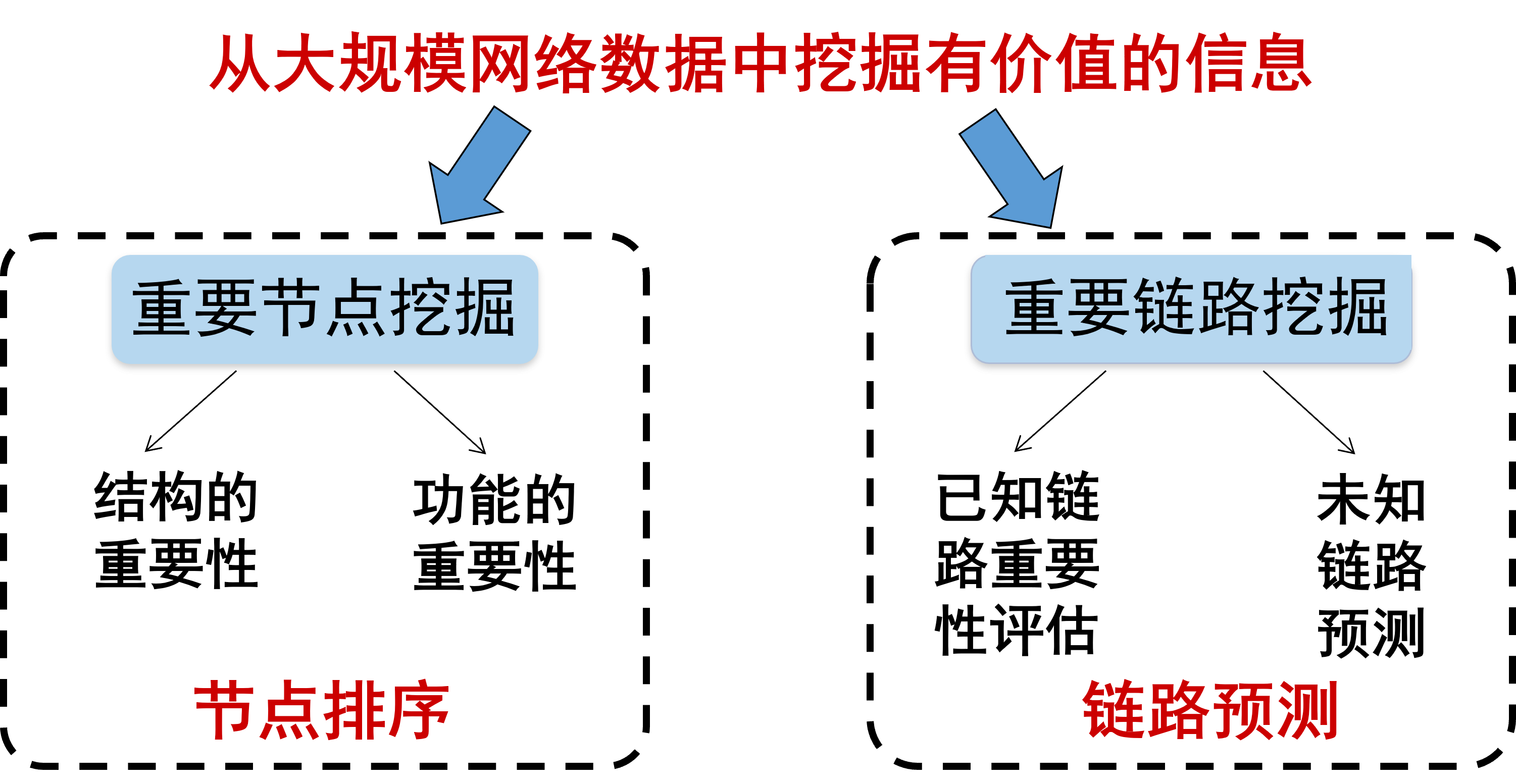 社交網(wǎng)絡(luò)是我們?nèi)粘I钪凶顬槭煜さ木W(wǎng)絡(luò),每個人作為社交網(wǎng)絡(luò)中的節(jié)點,通過線上線下關(guān)系聯(lián)系起來。回到剛開始的問題,為什么一條網(wǎng)絡(luò)謠言可以引爆全網(wǎng)大規(guī)模輿情,我們又應(yīng)該從何入手、控制輿情呢?解決這些問題的關(guān)鍵在于在社交平臺上找到謠言傳播過程中的關(guān)鍵人物,以及識別和切斷重要的傳播路徑。歸結(jié)起來就是對兩個關(guān)鍵科學(xué)問題的探索:如何挖掘網(wǎng)絡(luò)中的重要節(jié)點[3],以及如何挖掘網(wǎng)絡(luò)中的重要鏈路[4]。這兩個問題的研究在網(wǎng)絡(luò)科學(xué)中被稱為網(wǎng)絡(luò)信息挖掘(如圖4所示)。