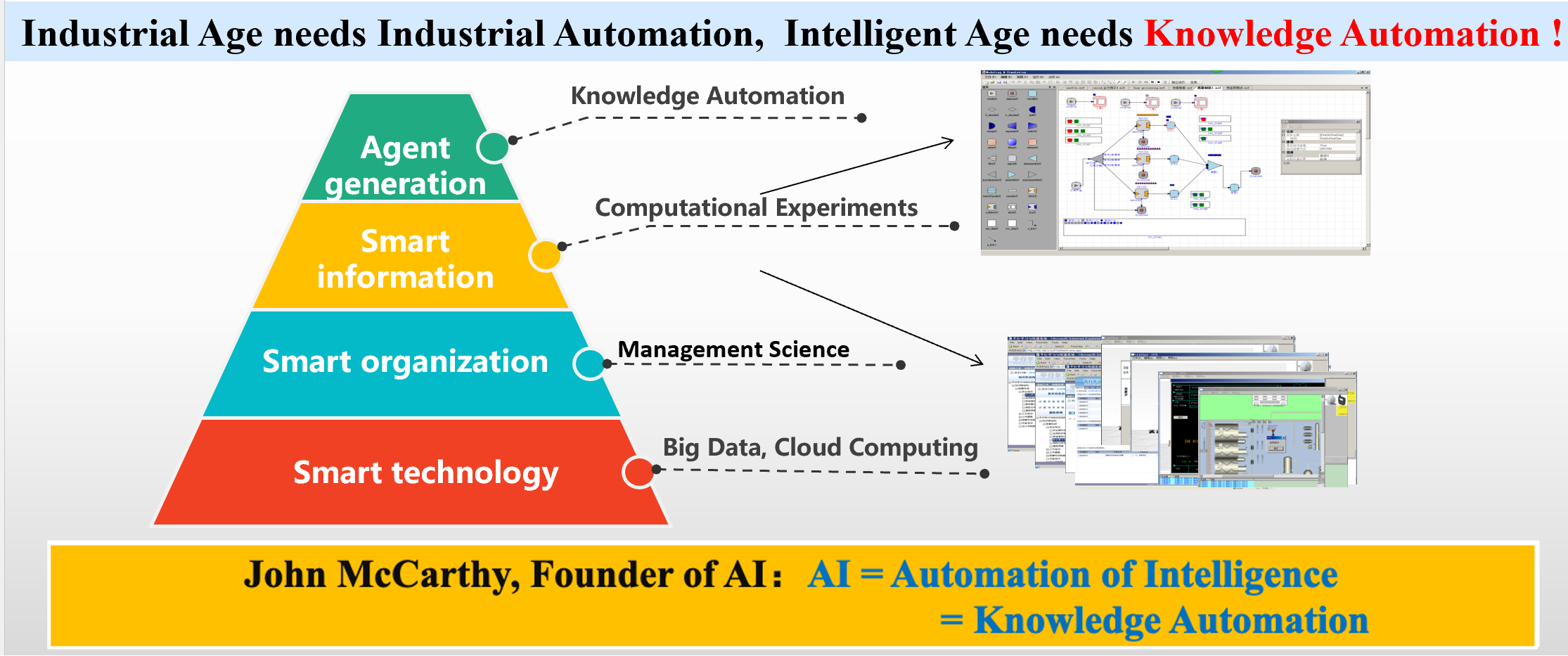 人工智能的創(chuàng)始人約翰·麥卡錫在1992年曾親口對我說,AI就是"Automation of Intelligence"的縮寫,而這一概念的核心就是“知識自動化”。麥卡錫在交流中強調(diào),機器人研究的實質(zhì)即是自動化,而他所從事的則是智能的自動化,其本質(zhì)即是知識的自動化,如圖1所示。這一觀點也深刻地揭示了教育在未來必將受到重大影響。當前學校傳授的大量專業(yè)知識,在未來可能不再需要依賴專門教師進行講授,因為這些知識將逐漸轉(zhuǎn)化為普遍的科學素質(zhì)與常識,成為不學也必須掌握、不會即可隨時獲取的內(nèi)容。傳統(tǒng)教育中對經(jīng)典著作的背誦,例如《論語》《道德經(jīng)》,曾被視為博士學位的標準,歷史上2000年前后博士的界定就是基于對一部書中某一章節(jié)的掌握。而在后面的科舉時代,狀元所需掌握的知識總量若以今日的“Token size”或比特數(shù)量衡量,實際上相當于小學程度。由此可見,知識教育體系及其學位在歷史演進中不斷發(fā)生變化,我們必須構(gòu)建與AI知識自動化相應的體系,特別是盡快消除“刷題”與應試的危害。