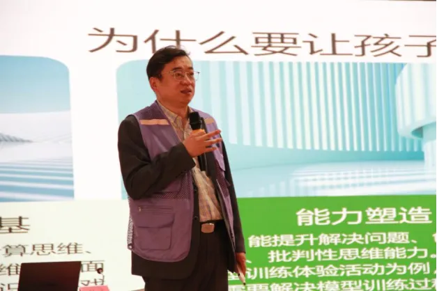 張超作“開源硬件點亮創(chuàng)新教育之光”主題報告,聚焦開源硬件的創(chuàng)新教育應(yīng)用,先闡述其與信息技術(shù)、AI、機(jī)器人的關(guān)聯(lián)及自身特點,回顧發(fā)展歷史;再詳解中小學(xué)生常用開源硬件的定位、適用學(xué)段及編程工具;接著介紹課程設(shè)計三階段與注意事項;最后展示真實AI課程案例,指導(dǎo)現(xiàn)場學(xué)生完成實操,強(qiáng)調(diào)“知行合一”。